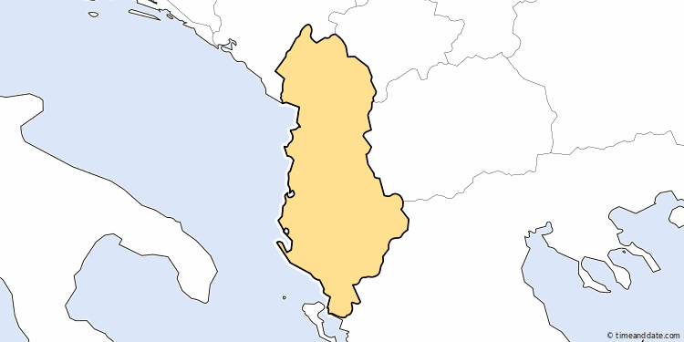 5:02:15 am Friday, December 5, 2025Fullscreen Country: AlbaniaLong Name: Republic of AlbaniaAbbreviations: AL, ALBCapital: TiranaTime Zones: 1Dial Code: +355 Time Zone in Albania 5:02 amDurrësCETUTC +1 5:02 amVlorëCETUTC +1 5:02 amShkodërCETUTC +1 5:02 amTiranaCETUTC +1 5:02 amElbasanCETUTC +1 5:02 amKorçëCETUTC +1 See all Time Zones in AlbaniaSee Holidays in AlbaniaCreate a Calendar for AlbaniaCurrent Local Time in Locations in Albania with Links for More Information (7 Locations)DurrësFri 5:02 amKorçëFri 5:02 amVlorëFri 5:02 amElbasanFri 5:02 amShkodërFri 5:02 amGjirokastërFri 5:02 amTiranaFri 5:02 amPopup WindowFullscreenExitAlbania5:0215amFriday, December 5, 2025Need some help?Tools & ConvertersMeeting Planner for TiranaTime Zone Converter for TiranaEvent Time Announcer for TiranaTime difference between Tirana and other locationsDistance calculator to/from TiranaDisplay a free clock for Tirana on your website or blogCalendar & HolidaysCreate Albania calendarUpcoming HolidaysDec 8 - National Youth DayDec 21 - December SolsticeDec 24 - Christmas EveMore Holidays in AlbaniaAirportsTirana International Airport Nënë Tereza, TIATIRANA MIL. HELIPORTGJADER MIL. AIRPORTKORCA AIRFIELDKUKES AIRFIELDKUCOVA MIL. AIRPORT
