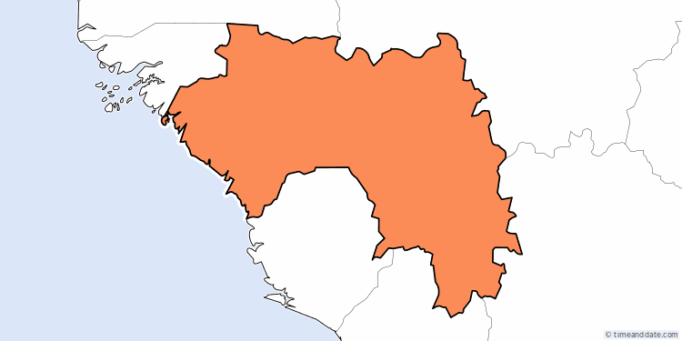 3:23:28 am Friday, December 5, 2025Fullscreen Country: GuineaLong Name: Republic of GuineaAbbreviations: GN, GINCapital: ConakryTime Zones: 1Dial Code: +224 Time Zone in Guinea 3:23 amBokéGMTUTC +0 3:23 amConakryGMTUTC +0 3:23 amKindiaGMTUTC +0 3:23 amNzérékoréGMTUTC +0 See all Time Zones in GuineaSee Holidays in GuineaCreate a Calendar for GuineaCurrent Local Time in Locations in Guinea with Links for More Information (4 Locations)BokéFri 3:23 amKindiaFri 3:23 amConakryFri 3:23 amNzérékoréFri 3:23 amPopup WindowFullscreenExitGuinea3:2328amFriday, December 5, 2025Need some help?Tools & ConvertersMeeting Planner for ConakryTime Zone Converter for ConakryEvent Time Announcer for ConakryTime difference between Conakry and other locationsDistance calculator to/from ConakryDisplay a free clock for Conakry on your website or blogCalendar & HolidaysCreate Guinea calendarUpcoming HolidaysDec 21 - December SolsticeDec 25 - Christmas DayJan 1 - New Year's DayMore Holidays in GuineaAirportsConakry International Airport, CKYFria Airport, FIGFaranah Airport, FAATata Airport, LEKSIGUIRI, GIIKOUNDARA/SAMBAILO, SBI