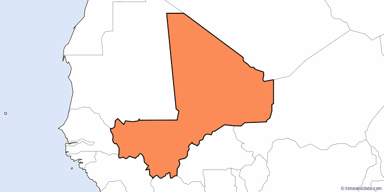 3:23:29 am Friday, December 5, 2025Fullscreen Country: MaliLong Name: Republic of MaliAbbreviations: ML, MLICapital: BamakoTime Zones: 1Dial Code: +223 Time Zone in Mali 3:23 amBamakoGMTUTC +0 3:23 amSikassoGMTUTC +0 3:23 amKoutialaGMTUTC +0 3:23 amTimbuktuGMTUTC +0 See all Time Zones in MaliSee Holidays in MaliCreate a Calendar for MaliCurrent Local Time in Locations in Mali with Links for More Information (4 Locations)BamakoFri 3:23 amSikassoFri 3:23 amKoutialaFri 3:23 amTimbuktuFri 3:23 amPopup WindowFullscreenExitMali3:2329amFriday, December 5, 2025Need some help?Tools & ConvertersMeeting Planner for BamakoTime Zone Converter for BamakoEvent Time Announcer for BamakoTime difference between Bamako and other locationsDistance calculator to/from BamakoDisplay a free clock for Bamako on your website or blogCalendar & HolidaysCreate Mali calendarUpcoming HolidaysDec 21 - December SolsticeDec 25 - Christmas DayJan 1 - New YearMore Holidays in MaliAirportsSenou International Airport, BKOMopti Airport, MZIKayes Airport, KYSTombouctou Airport, TOMTessalit AirportGao International Airport, GAQ
